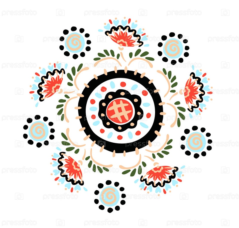 Набор этнических элементов. Бордюр представляет собой полосу с цветами, листьями, ветками, вензелями. Народная вышивка. Славянский, украинский, русский мотив. Хохлома, матрешка, дымковская игрушка. Мексиканский, индийский, цыганский ковер. Вязаное кружево