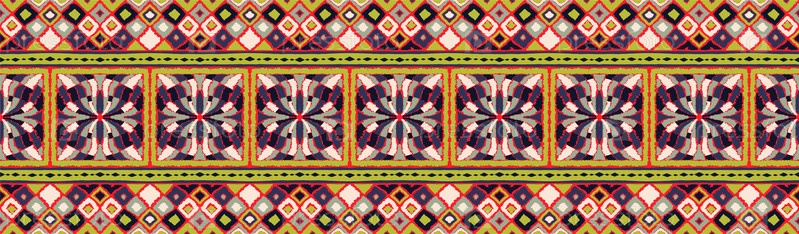 Набор этнических элементов. Бордюр представляет собой полосу с цветами, листьями, ветками, вензелями. Народная вышивка. Славянский, украинский, русский мотив. Хохлома, матрешка, дымковская игрушка. Мексиканский, индийский, цыганский ковер. Вязаное кружево