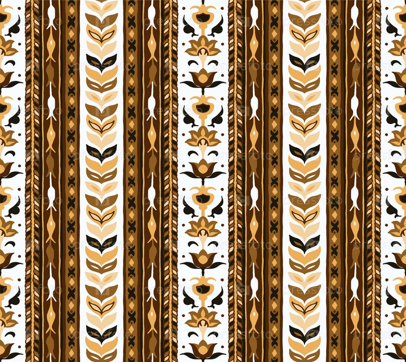 Геометрический дамасский орнамент. Икат границы. Этническая вышивка с листьями и монограммами. Племенная векторная текстура. Бесшовный народный узор в ацтекском стиле. Индийский, скандинавский, цыганский, мексиканский, африканский ковер