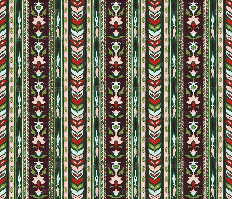 Геометрический дамасский орнамент. Икат границы. Этническая вышивка с листьями и монограммами. Племенная векторная текстура. Бесшовный народный узор в ацтекском стиле. Индийский, скандинавский, цыганский, мексиканский, африканский ковер