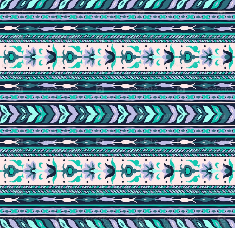 Геометрический фольклорный орнамент икат. Племенная этническая векторная текстура. Бесшовный полосатый узор в стиле ацтеков. Рисунок племенной вышивки. Индийский, скандинавский, цыганский, мексиканский, народный узор
