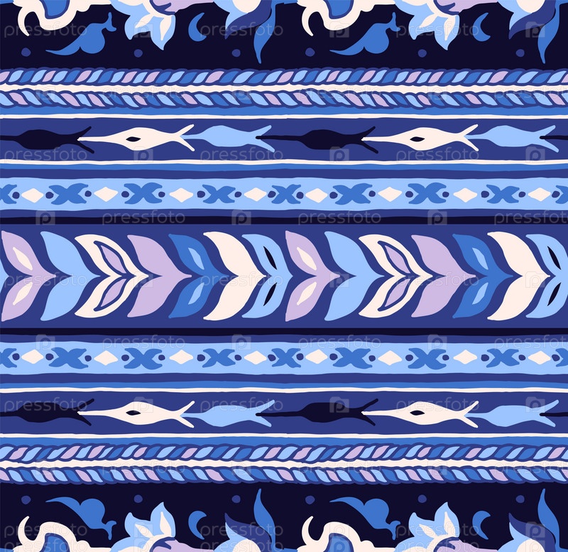 Геометрический фольклорный орнамент икат. Племенная этническая векторная текстура. Бесшовный полосатый узор в стиле ацтеков. Рисунок племенной вышивки. Индийский, скандинавский, цыганский, мексиканский, народный узор