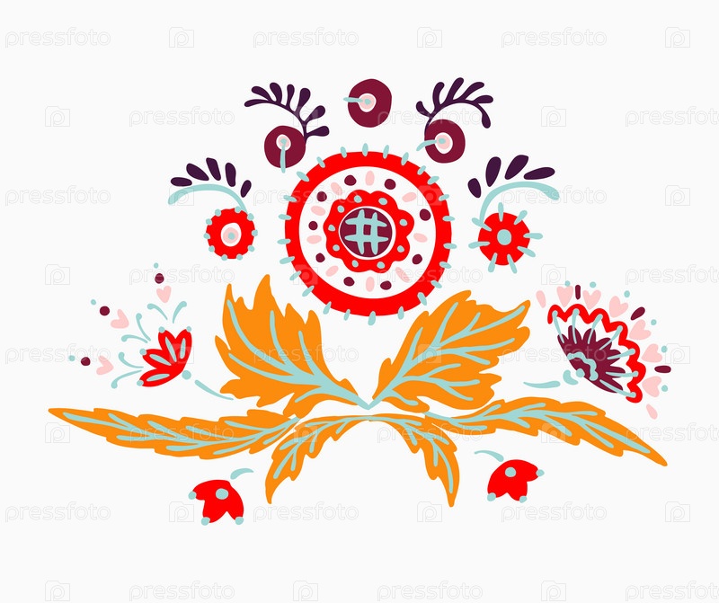 Набор этнических элементов. Бордюр представляет собой полосу с цветами, листьями, ветками, вензелями. Народная вышивка. Славянский, украинский, русский мотив. Хохлома, матрешка, дымковская игрушка. Мексиканский, индийский, цыганский ковер. Вязаное кружево