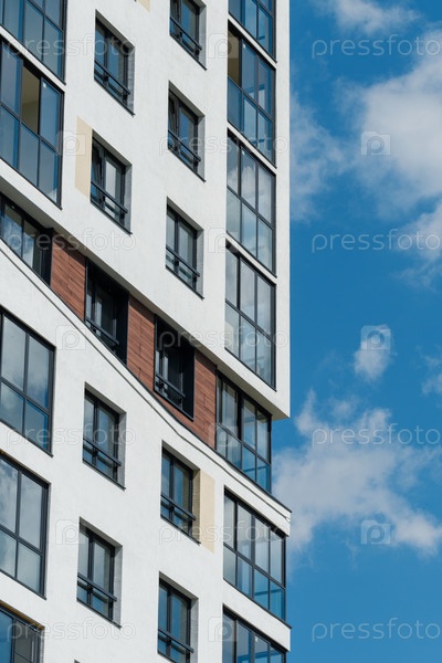 Новый жилой дом в скандинавском стиле на фоне голубого неба в солнечный день