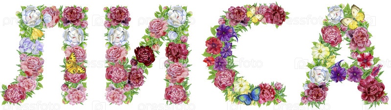 Слово FOX на русском языке из акварельных цветов, изолированная рука, нарисованная на белом фоне, свадебный дизайн