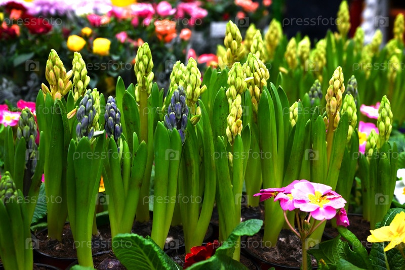 Цветы цветущих гиацинтов в цветочном магазине