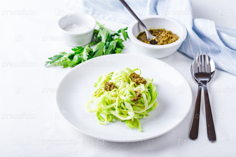 Полезные лапши из цуккини с соусом песто