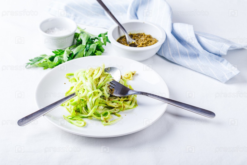 Полезные лапши из цуккини с соусом песто
