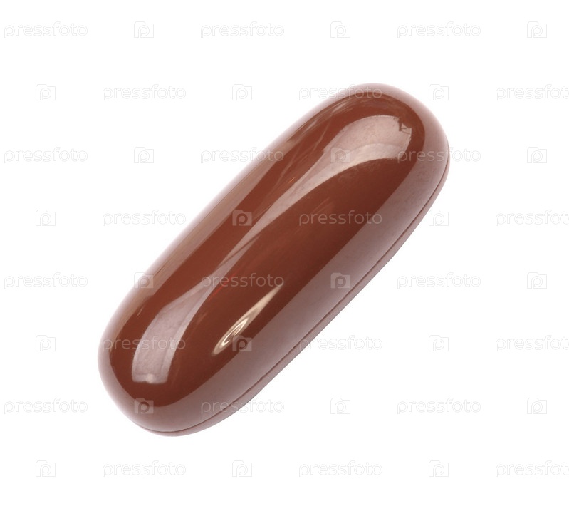 Коричневая, желатиновая капсула с лекарством или витаминами