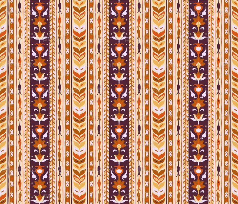 Геометрический дамасский орнамент. Икат границы. Этническая вышивка с листьями и монограммами. Племенная векторная текстура. Бесшовный народный узор в ацтекском стиле. Индийский, скандинавский, цыганский, мексиканский, африканский ковер