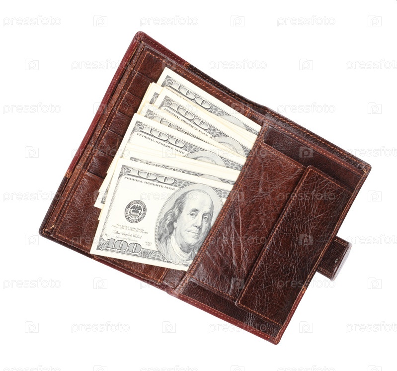Кожаный кошелек с изолированными долларами