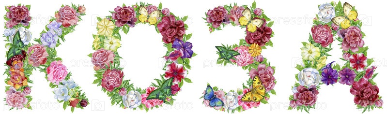 Слово КОЗА на русском из акварельных цветов
