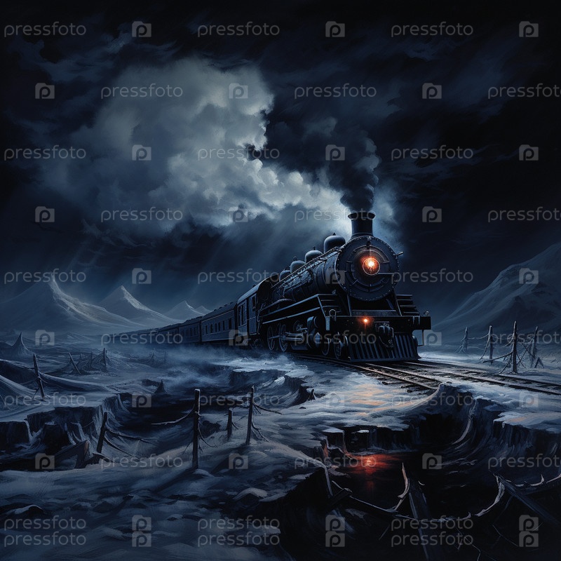 Паровоз пробирается через снежную пустыню ночью