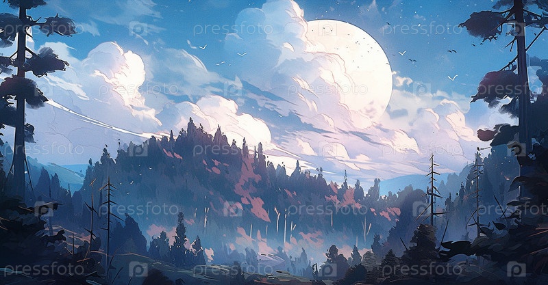 Ночной пейзаж в стиле аниме