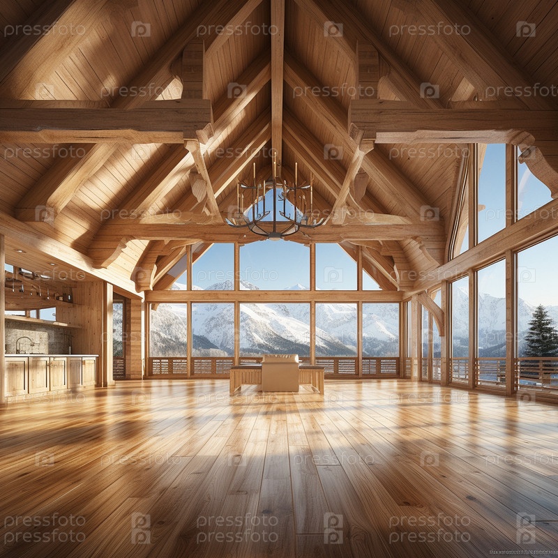 Светлый и просторный и минималистичный интерьер дома из бруса