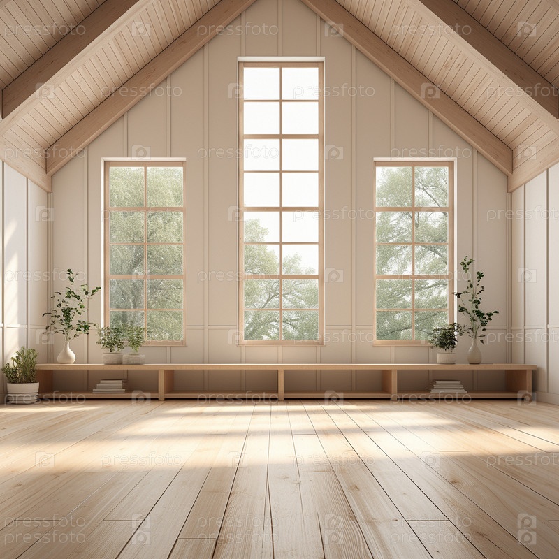 Светлый и просторный и минималистичный интерьер дома из бруса