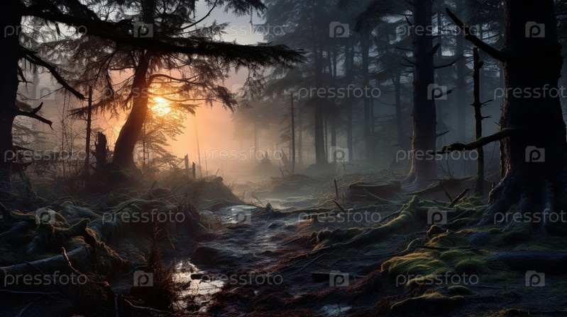 Мрачный готический лес в готическом стиле