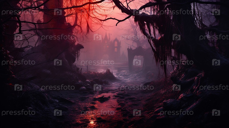 Мрачный готический лес в готическом стиле