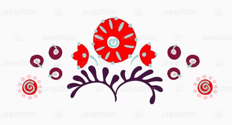 Набор этнических элементов. Бордюр представляет собой полосу с цветами, листьями, ветками, вензелями. Народная вышивка. Славянский, украинский, русский мотив. Хохлома, матрешка, дымковская игрушка. Мексиканский, индийский, цыганский ковер. Вязаное кружево