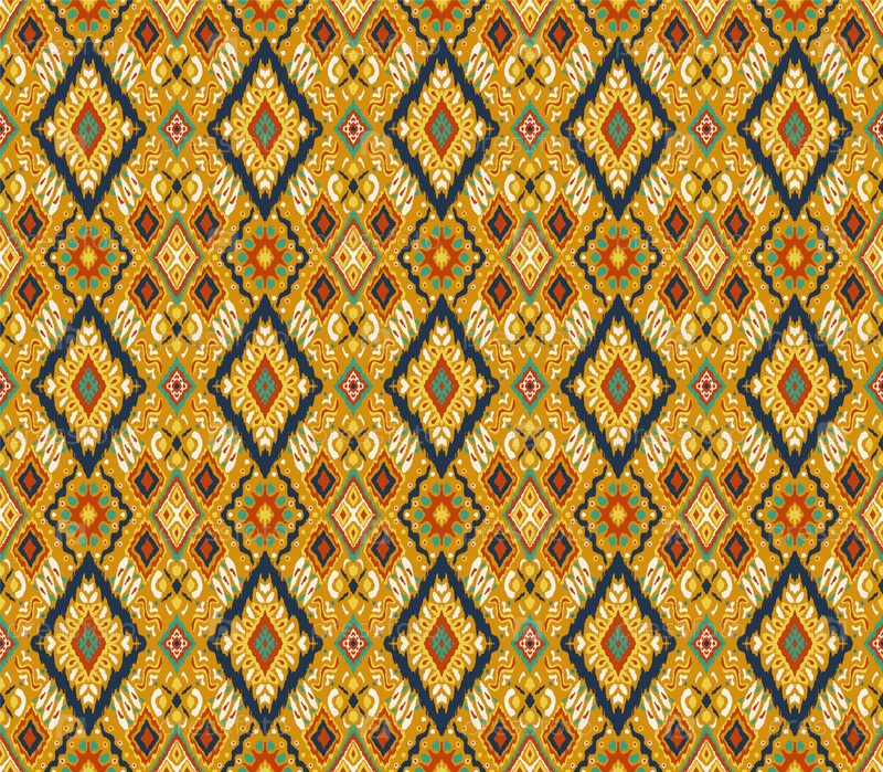 Икат геометрический фольклорный орнамент с бриллиантами. Племенная этническая векторная текстура. Бесшовный полосатый узор в стиле ацтеков. Народная вышивка. Индийский, скандинавский, цыганский, мексиканский, африканский ковер