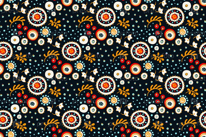 Бесшовный узор с фантазийными цветами, этнический вращающийся повторяющийся дизайн ткани и плитки, натуральные обои, иллюстрация завитка цветочного декора. Пейсли печать рисованной элементы.Украинский узор