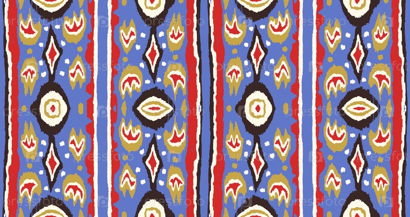 Икат геометрический фольклорный орнамент с бриллиантами. Племенная этническая векторная текстура. Бесшовный полосатый узор в стиле ацтеков. Народная вышивка. Индийский, скандинавский, цыганский, мексиканский, африканский ковер