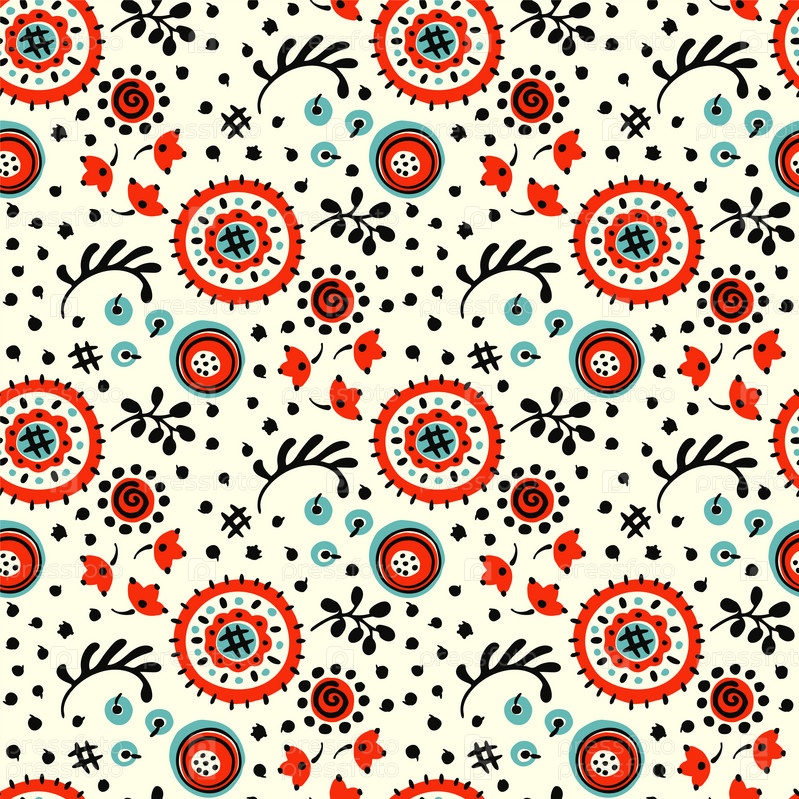 Бесшовный узор с фантазийными цветами, этнический вращающийся повторяющийся дизайн ткани и плитки, натуральные обои, иллюстрация завитка цветочного декора. Пейсли печать рисованной элементы.Украинский узор