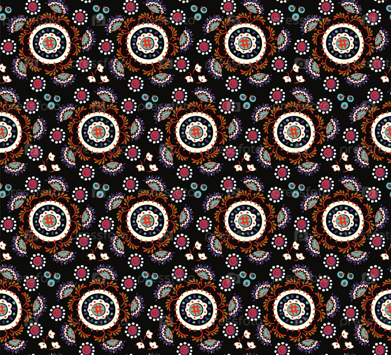 Бесшовный узор с фантазийными цветами, этнический вращающийся повторяющийся дизайн ткани и плитки, натуральные обои, иллюстрация завитка цветочного декора. Пейсли печать рисованной элементы.Украинский узор
