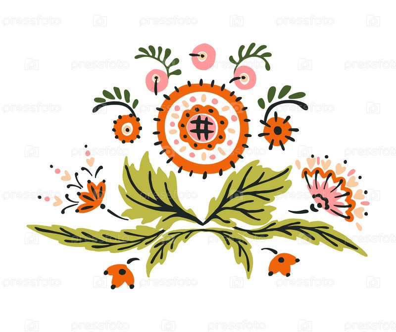Набор этнических элементов. Бордюр представляет собой полосу с цветами, листьями, ветками, вензелями. Народная вышивка. Славянский, украинский, русский мотив. Хохлома, матрешка, дымковская игрушка. Мексиканский, индийский, цыганский ковер. Вязаное кружево
