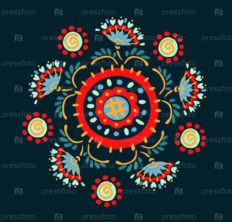 Набор этнических элементов. Бордюр представляет собой полосу с цветами, листьями, ветками, вензелями. Народная вышивка. Славянский, украинский, русский мотив. Хохлома, матрешка, дымковская игрушка. Мексиканский, индийский, цыганский ковер. Вязаное кружево