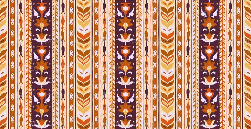 Геометрический дамасский орнамент. Икат границы. Этническая вышивка с листьями и монограммами. Племенная векторная текстура. Бесшовный народный узор в ацтекском стиле. Индийский, скандинавский, цыганский, мексиканский, африканский ковер