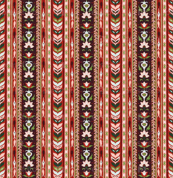Геометрический дамасский орнамент. Икат границы. Этническая вышивка с листьями и монограммами. Племенная векторная текстура. Бесшовный народный узор в ацтекском стиле. Индийский, скандинавский, цыганский, мексиканский, африканский ковер
