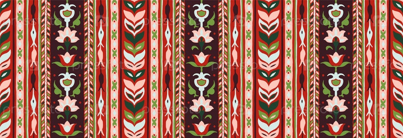 Геометрический дамасский орнамент. Икат границы. Этническая вышивка с листьями и монограммами. Племенная векторная текстура. Бесшовный народный узор в ацтекском стиле. Индийский, скандинавский, цыганский, мексиканский, африканский ковер