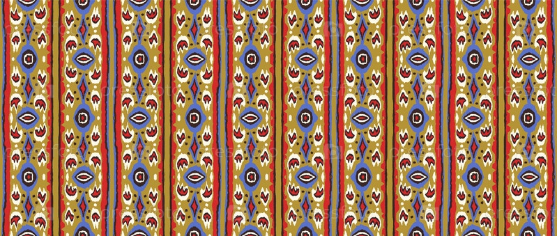 Икат геометрический фольклорный орнамент с бриллиантами. Племенная этническая векторная текстура. Бесшовный полосатый узор в стиле ацтеков. Народная вышивка. Индийский, скандинавский, цыганский, мексиканский, африканский ковер