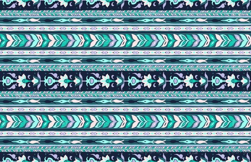 Геометрический фольклорный орнамент икат. Племенная этническая векторная текстура. Бесшовный полосатый узор в стиле ацтеков. Рисунок племенной вышивки. Индийский, скандинавский, цыганский, мексиканский, народный узор