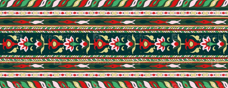 Геометрический фольклорный орнамент икат. Племенная этническая векторная текстура. Бесшовный полосатый узор в стиле ацтеков. Рисунок племенной вышивки. Индийский, скандинавский, цыганский, мексиканский, народный узор