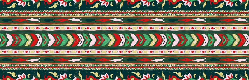 Геометрический фольклорный орнамент икат. Племенная этническая векторная текстура. Бесшовный полосатый узор в стиле ацтеков. Рисунок племенной вышивки. Индийский, скандинавский, цыганский, мексиканский, народный узор