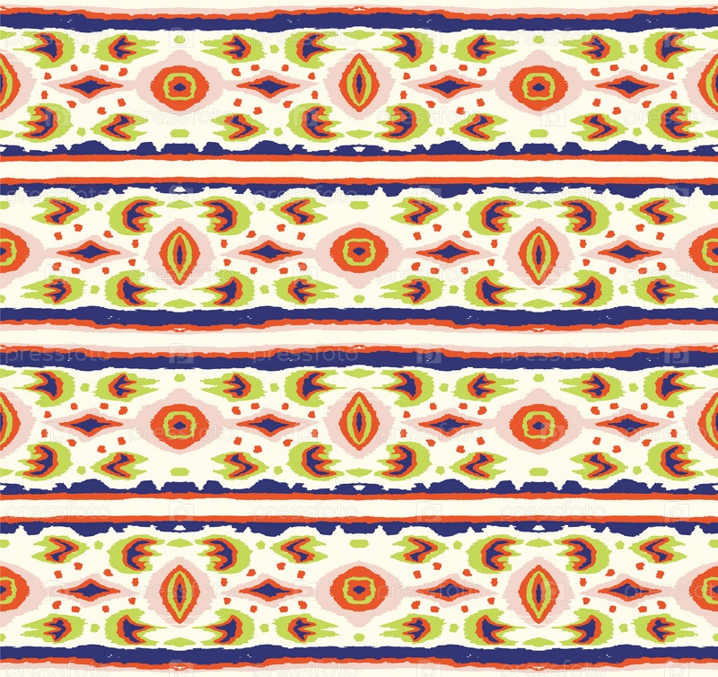 Икат геометрический фольклорный орнамент с бриллиантами. Племенная этническая векторная текстура. Бесшовный полосатый узор в стиле ацтеков. Народная вышивка. Индийский, скандинавский, цыганский, мексиканский, африканский ковер