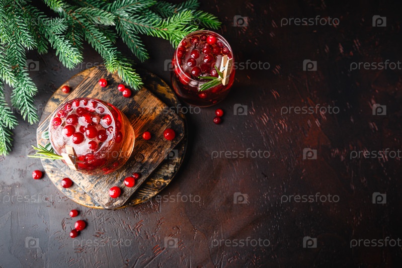 Праздничный коктейль из клюквы и розмарина со льдом. Алкогольный или безалкогольный коктейль