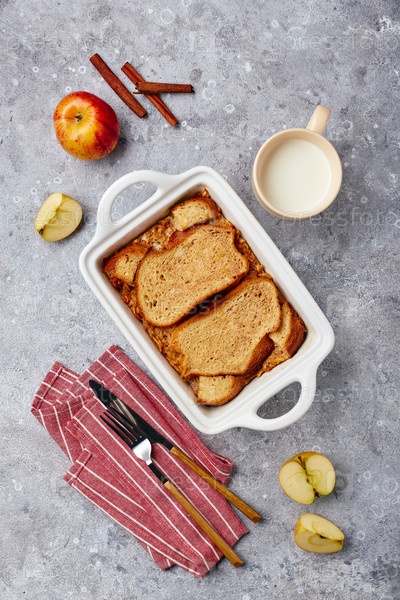 Хлебный пудинг Запеканка для завтрака из пшеничного хлеба, яиц, молока и тертых яблок