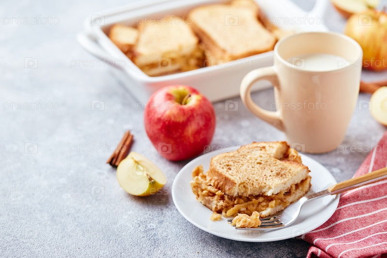 Хлебный пудинг Запеканка для завтрака из пшеничного хлеба, яиц, молока и тертых яблок