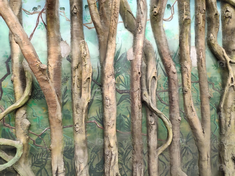 Барельефы в виде стволов деревьев. Дизайн интерьера