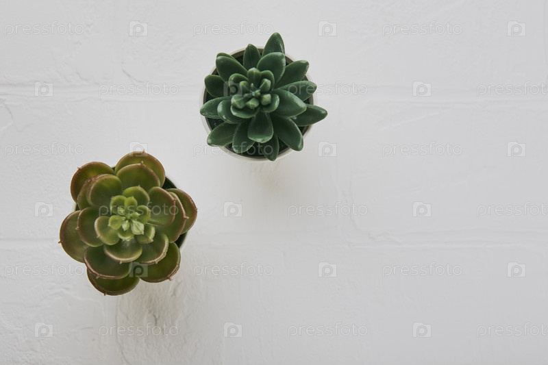 Различные виды эхеверии, сочные комнатные растения хавортия в глиняных горшках на заднем плане. Скандинавское хипстерское украшение дома
