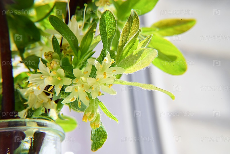 Солнечные желтые солнечные желтые зеленые цветы, макросъемка цветущего садового кустарника