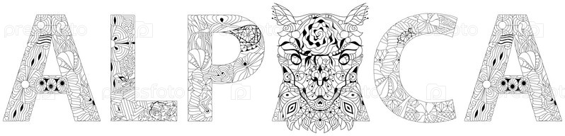 АЛЬПАКА в русском стиле зентангл. Может использоваться для печати на футболке, обоях или плакате для раскрашивания