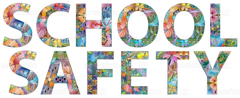 ШКОЛЬНАЯ БЕЗОПАСНОСТЬ слова. Рисованной надписи. Векторный текст