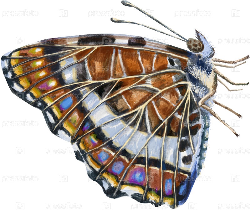 Коричневая бабочка Карта со сложенными крыльями. Вид сбоку. Акварельная иллюстрация