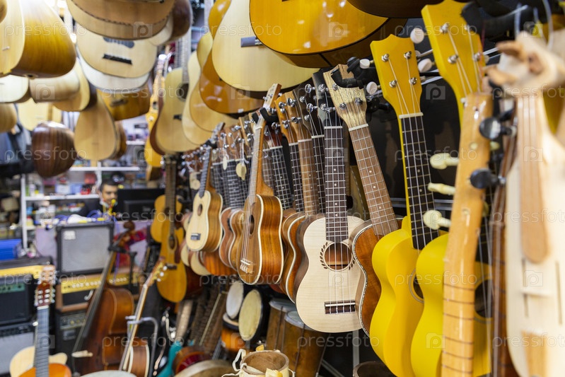 Турция. Стамбул. Магазин музыкальных инструментов. Торговля музыкальными инструментами на улице Галипа Деде. Турция. Стамбул. Магазин музыкальных инструментов. Торговля музыкальными инструментами на улице Галипа Деде