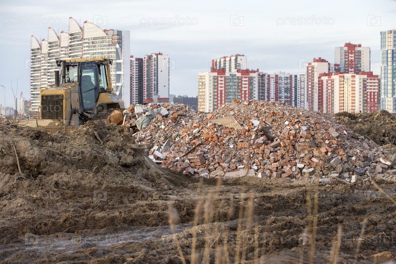 Россия. Санкт-Петербург. Строительство недвижимости. Строительная техника и строительный мусор. Россия. Санкт-Петербург. Строительство недвижимости. Строительное оборудование и строительные свалки