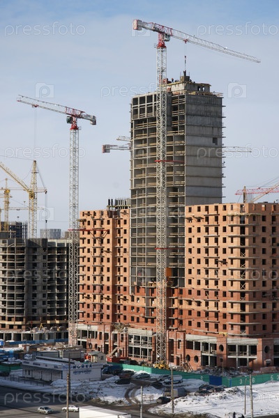 Россия. Санкт-Петербург. Новостройки. Строительство недвижимости. Строительная техника и подъемные краны. Строительство жилого дома по адресу проспект Ленина, 84